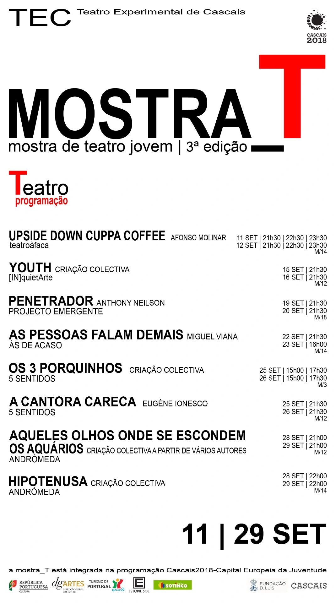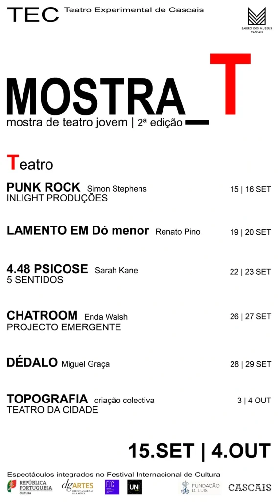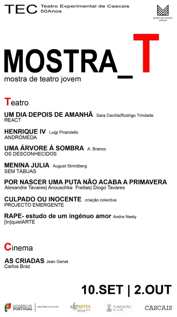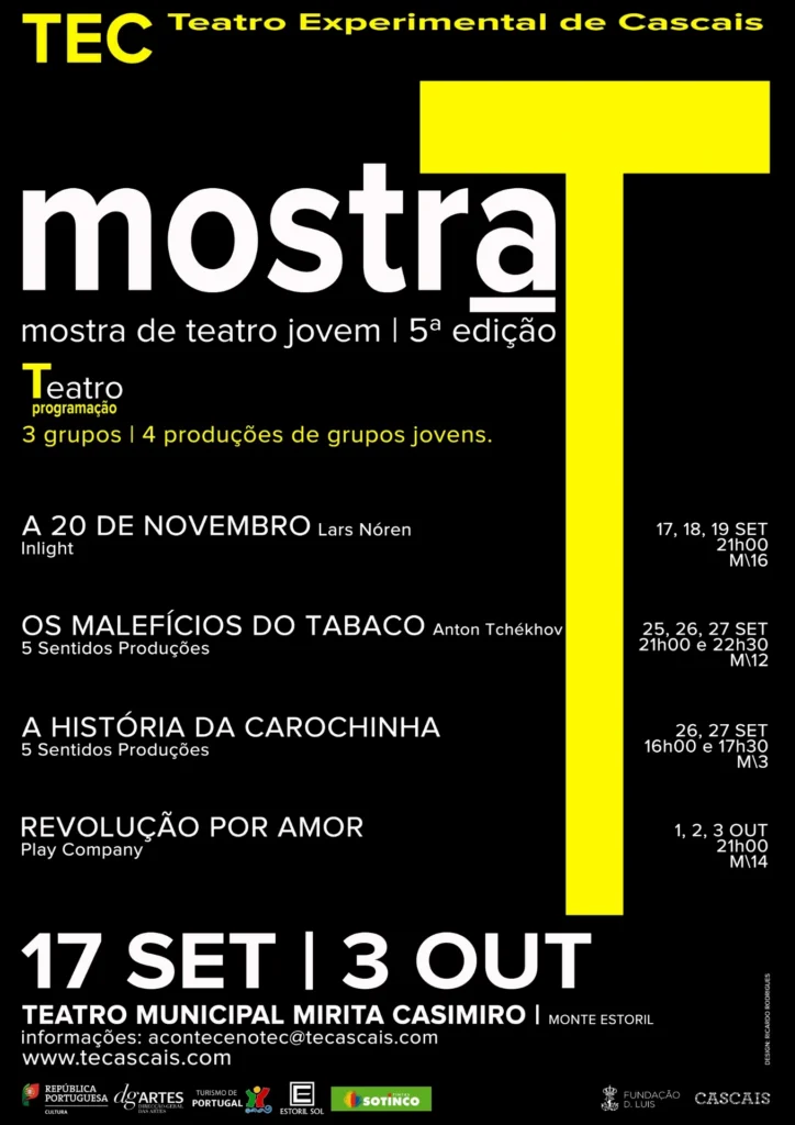 Constatámos que a maior percentagem desses pedidos era feita por grupos recém formados de ex-alunos da Escola Profissional de Teatro de Cascais, pelo que resolvemos juntá-los e criar uma mostra de teatro jovem, em que um dos critérios fulcrais de participação seria incluir no espectáculo, alunos ou ex-alunos da EPTC. Tem sido um sucesso de público e como tal, continuaremos em futuras edições, a abertura do Festival a grupos vindos de outras Escolas do país.